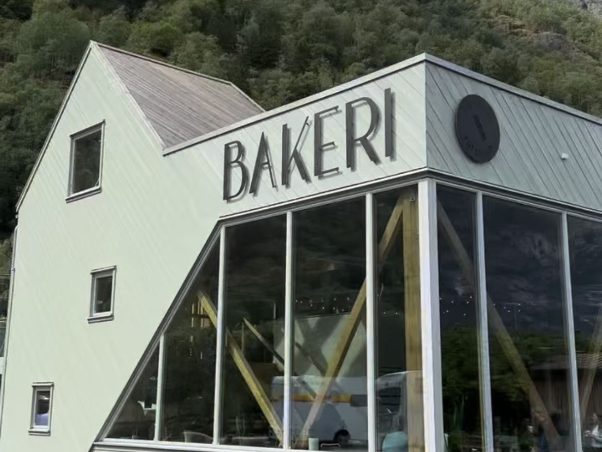 Jostein og Mariell flyttet hjem fra London og savnet skikkelig bakst. Så de bygde om et gammelt lagerbygg på Lærdalsøyri til et bakeri du ikke glemmer med det første. Fredag & Fretland baker surdeigsbrød og croissanter med økologisk steinmalt mel i et åpent, luftig lokale der du ser rett inn i produksjonen. Veggene har tapeter som minner om fjord og landskap, og det hele ligger et steinkast fra en av Skandinavias mest autentiske trebebyggelser.